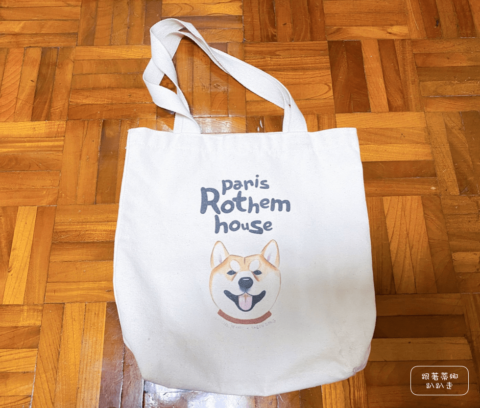 以 Paris Rothem House 的吉祥物 Hari 狗狗的表情設計的限量精緻環保袋!是給住宿超過五天的人的禮物~收到的時候真是又驚又喜,愛不釋手呢!