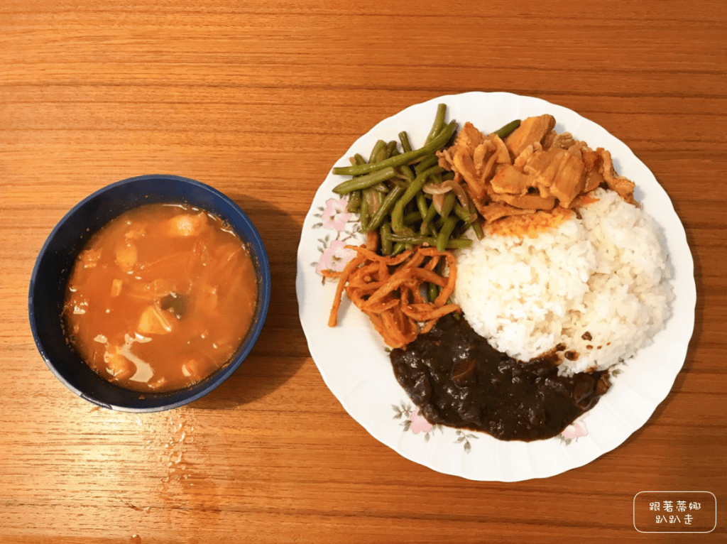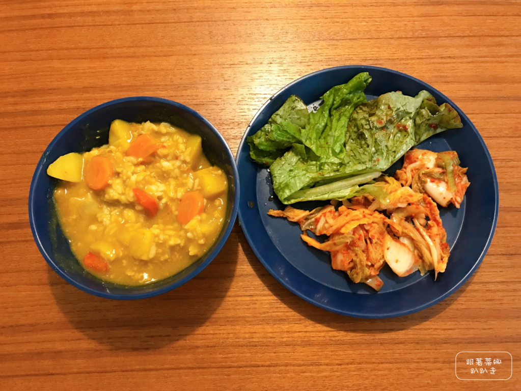 韓式咖哩!我超喜歡~~這裡的晚餐都是自助式的,拿著碗盤去廚房盛。阿嬤總是擔心大家吃不夠,一直幫大家加菜,在外闖蕩一天後真的很有回家的感覺!