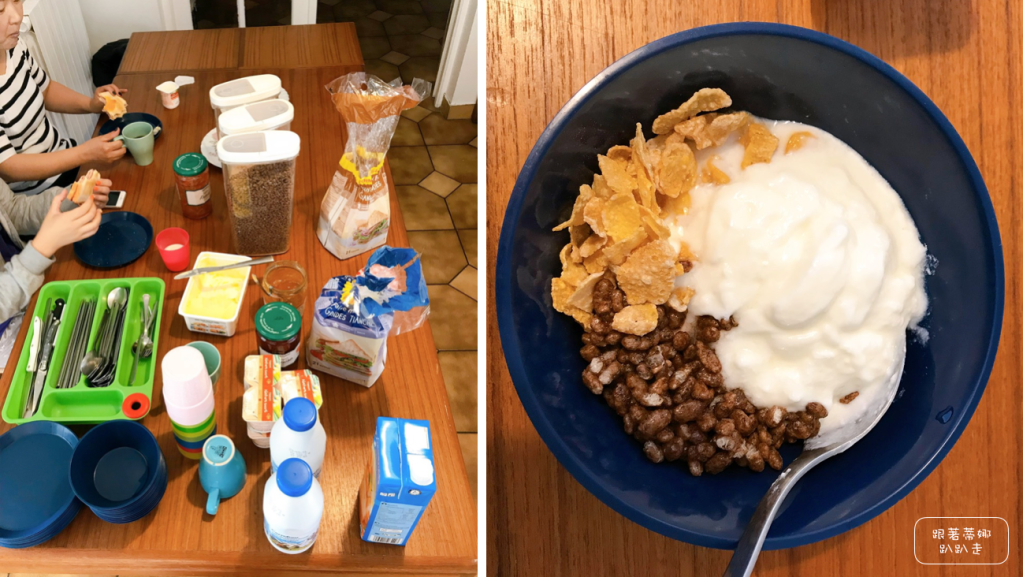 早餐就是法國人平常會吃的西式早餐,包含麥片、吐司、優格、果汁、咖啡、鮮奶等,讓你吃到飽~蒂娜總是喜歡跟大家吃完早餐才出門,每天一早就是好心情。